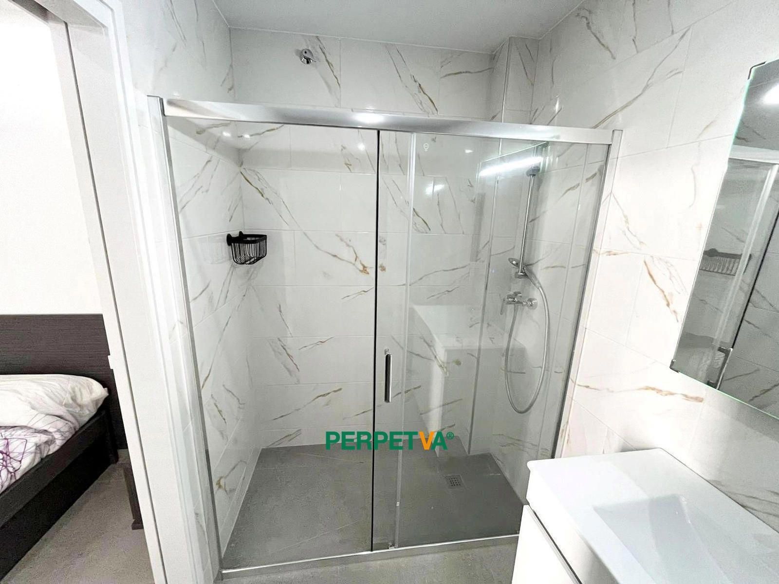 Desde el salón accedemos a una zona de dormitorio en suite con baño completo (adaptado a silla de ruedas) y salida directa a un patio interior privado de 9 m², ideal para crear un espacio chill-out o zona verde.